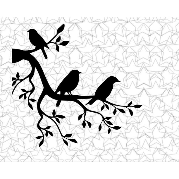 Three Little Birds On A Tree Branch Wall Decal Vinyl Sticker Tattoo For Windows Glass With Size And Color Options Walmart Com